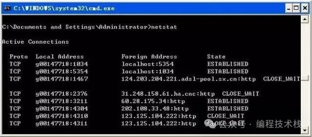 下面給出netstat的一些常用選項: ① netstat –a: -a選項顯示所有的有效連接信息列表,包括已建立的連接(ESTABLISHED),也包括監(jiān)聽連接請求(LISTENING)的那些連接。 ② netstat –n: 以點分十進(jìn)制的形式列出IP地址,而不是象征性的主機(jī)名和網(wǎng)絡(luò)名。