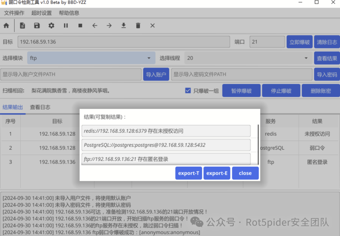 支持一鍵爆破檢測(cè)13+種協(xié)議,自動(dòng)化輸出報(bào)告,讓安全隱患無(wú)所遁形!