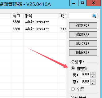 填入相關(guān)信息,備注中也可以輸入補(bǔ)充信息,所有信息都會(huì)加密后保存在ini配置文件中。 在主程序主機(jī)列表窗口中,點(diǎn)擊鼠標(biāo)右鍵,可以進(jìn)行編輯、刪除、上移、下移、移動(dòng)到指定行等操作: 為了方便進(jìn)行遠(yuǎn)程桌面操作的同時(shí),不干擾本地桌面程序運(yùn)行和提示,也可以設(shè)置遠(yuǎn)程桌面窗口自定義大小,建議寬帶小50、高度小80左右為宜,可以充分利用本地窗口桌面,又不會(huì)遮擋本地程序的提醒信息: 效果如下: 3、設(shè)置進(jìn)入碼 為了確保服務(wù)器參數(shù)安全,請(qǐng)務(wù)必設(shè)置進(jìn)入碼,點(diǎn)擊右下角“更改進(jìn)入碼-》更改”按鈕: