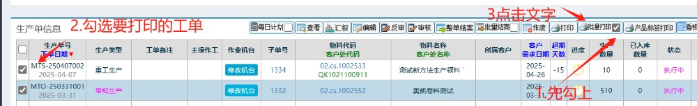 先勾上批量打印的選項(xiàng),明細(xì)項(xiàng)出來(lái)后,勾選上要打印的工單,最后點(diǎn)擊文字 如下圖:  點(diǎn)晴模切ERP更多信息:http://moqie.clicksun.cn,聯(lián)系電話(huà):4001861886 該文章在 2025/4/11 16:27:01 編輯過(guò) | 關(guān)鍵字查詢(xún) 相關(guān)文章 正在查詢(xún)... |
