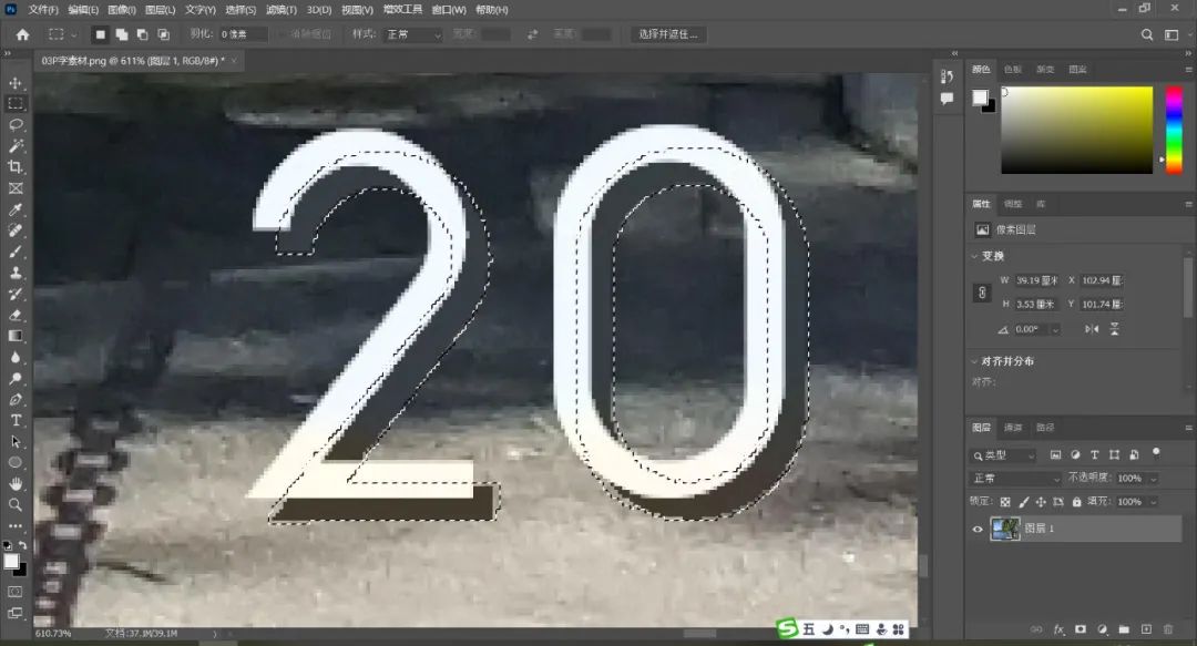 確定后新的選區(qū)就把文字水印和陰影都包括進去了。
