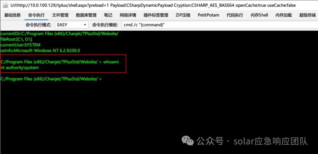 因為暢捷通T+程序都使用了預編譯,所以上傳的shell也需要先進行預編譯處理: CMD執(zhí)行