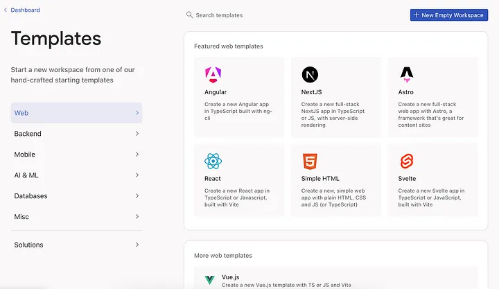 不過,看起來通過“自定義模型ID”功能,未來可能還能用別的AI模型。 創(chuàng)建新項(xiàng)目時(shí),F(xiàn)irebase Studio仍提供數(shù)十個(gè)模板供你選擇——當(dāng)然,你也可以選擇完全空白模板。