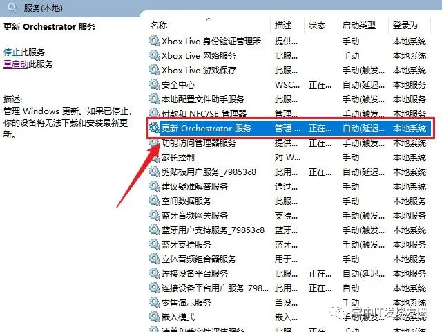 2.更新 Orchestrator 服務(wù),系統(tǒng)自動更新的計劃編排服務(wù),此服務(wù)會調(diào)用windowsupdate服務(wù)定期進行系統(tǒng)更新,禁用此服務(wù)后windows更新界面打不開,但大概7天后該服務(wù)的禁用狀態(tài)會自動恢復為啟用,服務(wù)執(zhí)行文件為C:\Windows\System32\usosvc.dll(usosvc是Update Service Orchestrator Service的縮寫)。