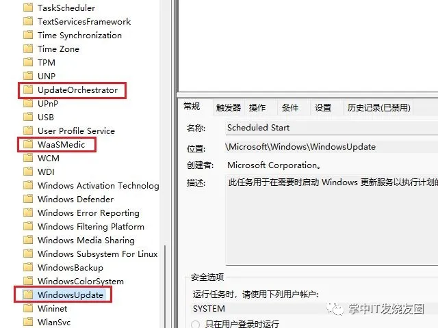 既然它們都會定期被系統(tǒng)恢復,是不是系統(tǒng)設(shè)置了“任務(wù)計劃程序”來定期執(zhí)行的呢?禁用這些任務(wù)計劃程序有沒有用呢?按win鍵輸入“任務(wù)計劃程序”并打開,在任務(wù)計劃程序庫-microsoft-windows下找到了這三個服務(wù)的計劃程序目錄。