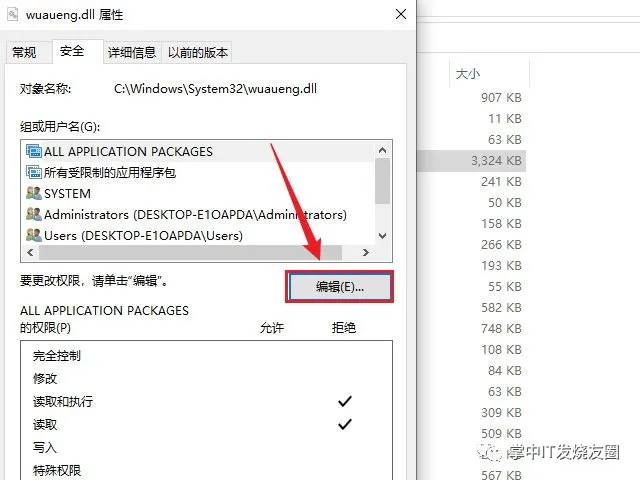 之后在文件屬性的安全選項卡中點擊“編輯”,將所有已存在用戶的“允許”權(quán)限修改為“拒絕”(選項保持一致,方便日后對照恢復),一路確定即可。