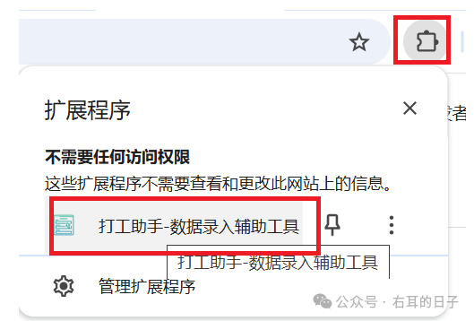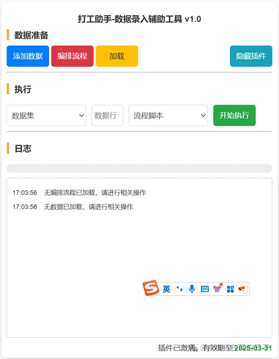 目錄 1.簡(jiǎn)介 2.特點(diǎn) 3. 下載與安裝 3.1下載地址 3.2安裝方式 4. 快速入門 4.1首次使用 4.2基本功能介紹 5. 功能詳解 5.1添加數(shù)據(jù) 5.2編排腳本 6. 流程編排方法 7. 體驗(yàn)方式 ========================== 1.簡(jiǎn)介 【打工助手-數(shù)據(jù)錄入輔助工具】,是一款高效的數(shù)據(jù)自動(dòng)化錄入輔助工具,作為瀏覽器插件,可以通過(guò)編寫流程腳本,快速將Excel數(shù)據(jù)自動(dòng)錄入到網(wǎng)頁(yè)的表單里。 效果如下: ![]() 2.特點(diǎn) 無(wú)需聯(lián)網(wǎng):無(wú)需接入互聯(lián)網(wǎng),在內(nèi)網(wǎng)也可以使用 隱私安全:不會(huì)竊取或?qū)ν鈧鬏斎魏螖?shù)據(jù) 3. 下載與安裝 3.1下載地址 (1)本文關(guān)聯(lián)的文件,點(diǎn)擊后可以直接下載 (2)百度網(wǎng)盤 鏈接: https://pan.baidu.com/s/1VVwsPvP22uv-mgQCnNCerw?pwd=g256 提取碼: g256 3.2安裝方式 需詳細(xì)安裝方式,可以自行搜索“如何本地安裝瀏覽器插件”。以下是簡(jiǎn)化后的安裝描述。 (1)解壓下載的壓縮文件 (2)依次點(diǎn)擊瀏覽器右上角的三個(gè)點(diǎn)按鈕