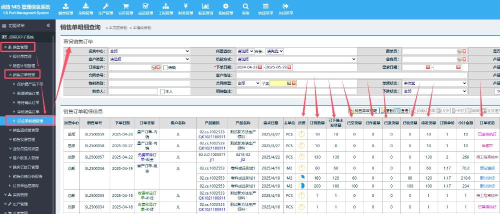 進(jìn)入ERP系統(tǒng)-》銷售管理-》銷售訂單管理-》訂貨單明細(xì)管理頁面,上面可以清楚顯示當(dāng)前銷售訂單的發(fā)貨進(jìn)度: