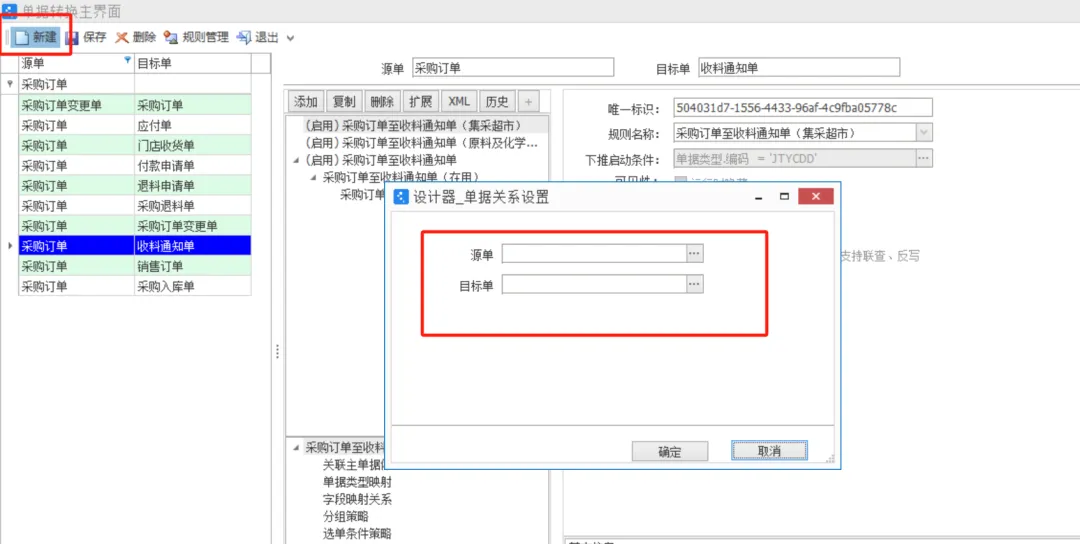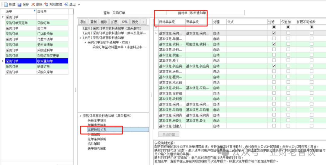 b.字段映射策略,即源單的A字段,映射到目標(biāo)單據(jù)的B字段;