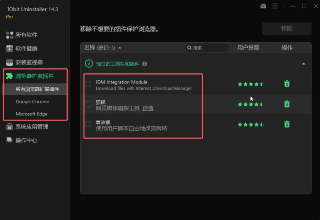 它還能為你清理掉瀏覽器中不用的插件,非常的方便。