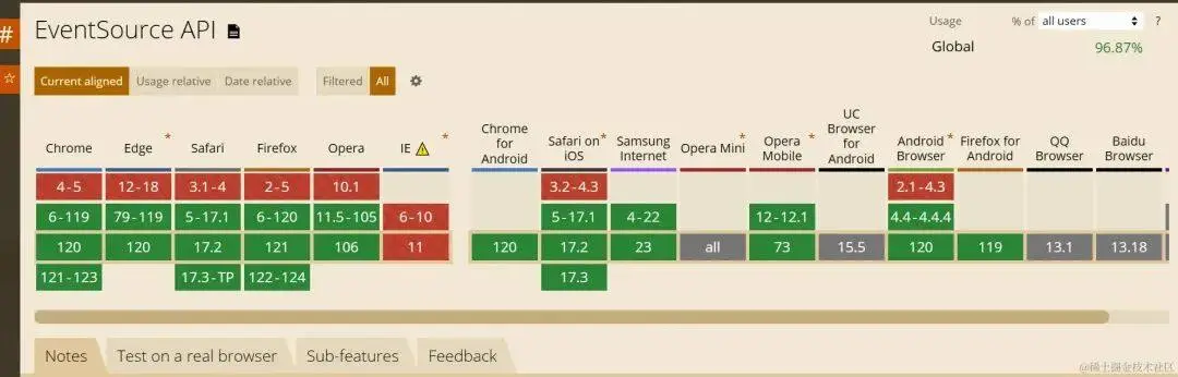 注意哦,上圖是SSE對于瀏覽器的兼容不是對于服務(wù)端的兼容。websocket和SSE有什么區(qū)別?