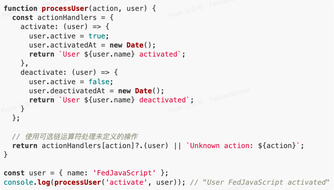 如果每個分支包含更復(fù)雜的邏輯,可以將函數(shù)作為對象的值: