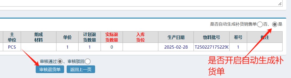 ![]() ![]() 點擊進入 如下圖: 點中一條后,再點擊審核按鈕 如下圖: ?審核時注意是否要自動生成補貨單,最后點擊審核退貨單按鈕 如下圖: