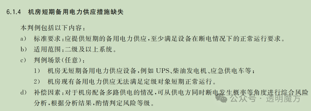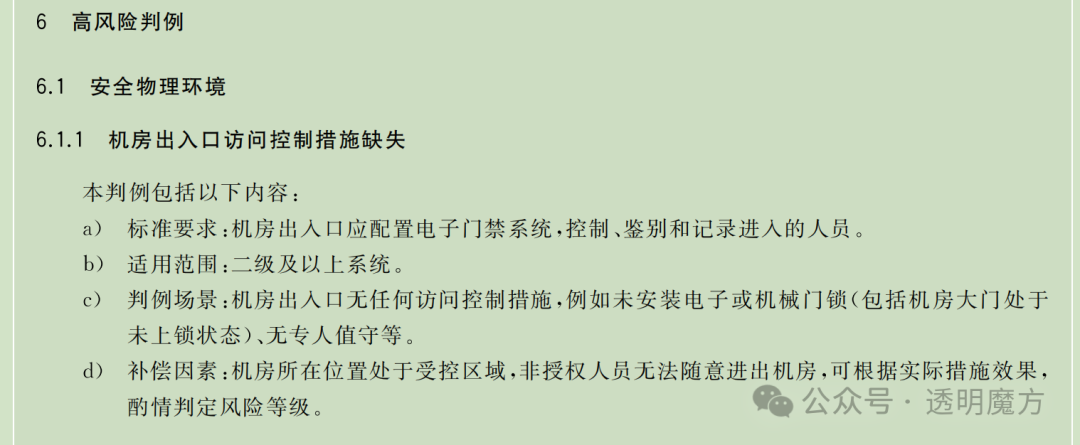 接著測(cè)評(píng)師一行到了機(jī)房門(mén)口,甲方老師刷門(mén)禁卡進(jìn)來(lái)。測(cè)評(píng)師問(wèn):“你們刷的門(mén)禁卡是加密的嗎?系統(tǒng)里面有誰(shuí)進(jìn)刷卡來(lái)的記錄嗎?” 甲方老師說(shuō):“是加密的,有記錄?!?/span>測(cè)評(píng)師又掃到了門(mén)口的桌子上有紙質(zhì)的進(jìn)出登記表,里面有近期的人員登錄記錄。問(wèn):“那外部運(yùn)維人員進(jìn)來(lái)是用這個(gè)登記嗎?我們也需要登記一下?!? 甲方老師說(shuō):“是的,外部人員在這里填寫(xiě)?!?/span>我查了一下,判斷依據(jù)應(yīng)該是GB/T 28448-2019的L2-PES1-03。不過(guò),這個(gè)測(cè)評(píng)要求并沒(méi)有要求門(mén)禁卡采用加密技術(shù),于是我問(wèn)了一下測(cè)評(píng)師為啥要強(qiáng)調(diào)這點(diǎn),他給我講了一個(gè)原則——所有的測(cè)評(píng)都是建立在安全的原則,國(guó)標(biāo)上面就一句話,但每個(gè)測(cè)評(píng)機(jī)構(gòu)的測(cè)評(píng)點(diǎn)都會(huì)自己在安全的原則上做適配。如果這個(gè)門(mén)禁卡沒(méi)有做加密,那么可以無(wú)窮復(fù)制,這樣門(mén)禁卡一旦丟失就會(huì)被復(fù)制很多張卡,就不安全了。另外,一般的非加密門(mén)禁卡也不會(huì)記錄人員信息。這是一個(gè)修得比較漂亮的機(jī)房,進(jìn)去后聽(tīng)不到太多噪聲,因?yàn)橛新涞氐牟AчT(mén)做了隔斷,把機(jī)柜和服務(wù)器等設(shè)備放在玻璃門(mén)內(nèi)。測(cè)評(píng)師問(wèn):“這個(gè)玻璃門(mén)有3c認(rèn)證嗎?” 然后在玻璃門(mén)上框找到了3c認(rèn)證標(biāo)識(shí)。我有點(diǎn)好奇為啥要看這個(gè),后來(lái)一查,3C認(rèn)證的玻璃在強(qiáng)度、耐沖擊性、熱穩(wěn)定性等方面都有更好的表現(xiàn)。這個(gè)應(yīng)該是對(duì)應(yīng)的L2-PES1-08這條,要采用耐火等級(jí)的材料,防火用的。測(cè)評(píng)師環(huán)顧了一下周?chē)?,發(fā)現(xiàn)墻面有一點(diǎn)裂縫,用漆補(bǔ)了一下,那個(gè)漆看著很像是漏水痕跡,于是走近細(xì)看了一下。然后他問(wèn):“你們有防震的驗(yàn)收?qǐng)?bào)告嗎?”甲方老師說(shuō):“這個(gè)沒(méi)有?!?測(cè)評(píng)師說(shuō):“按道理應(yīng)該要看防震驗(yàn)收材料的,不過(guò)也可以通過(guò)觀察來(lái)判斷,這里有一點(diǎn)裂縫,會(huì)產(chǎn)生相應(yīng)的疑問(wèn)?!?/span>我仔細(xì)看了一下,那個(gè)裂縫更像是漆面裂縫,不太像墻主體層面的裂縫。這條應(yīng)該是下面這條L2-PES1-01:在這條上,測(cè)評(píng)師沒(méi)有過(guò)度糾結(jié)。接下來(lái),測(cè)評(píng)師進(jìn)到機(jī)柜區(qū)域,去檢查了防雷擊—機(jī)柜接地。這個(gè)應(yīng)該是L2-PES1-06,因?yàn)闄C(jī)柜是鐵皮柜,刀片服務(wù)器用螺絲擰在柜子上,所以他只檢查了機(jī)柜的接地線,沒(méi)有再看設(shè)施設(shè)備的接地情況。測(cè)評(píng)師給我說(shuō),他見(jiàn)過(guò)有的客戶用木頭柜子裝設(shè)備,那這種設(shè)施設(shè)備就要單獨(dú)接地了。接下來(lái),測(cè)評(píng)師看到服務(wù)器和交換機(jī)等設(shè)備上貼了黃色防水標(biāo)簽紙,告訴我這種標(biāo)簽紙不易脫落且防水,如果用老的那種白色標(biāo)簽紙容易脫膠且不防水。測(cè)評(píng)師踩了踩靜電地板,問(wèn)這個(gè)通信線纜是是鋪設(shè)在地板下面嗎?強(qiáng)電弱電是否分槽鋪設(shè),得到了肯定的答復(fù)。我查了一下,這個(gè)其實(shí)就是測(cè)的下面幾項(xiàng)。接下來(lái),一行人又看了空調(diào),這個(gè)機(jī)房有4臺(tái)格力精密空調(diào),這個(gè)空調(diào)很大,比家里的雙開(kāi)門(mén)冰箱還大,溫度在20度左右,濕度在36左右。測(cè)評(píng)師給我指了指空調(diào)旁邊的兩個(gè)粗管子,告訴我這個(gè)是排水管。我網(wǎng)上查了一下,發(fā)現(xiàn)機(jī)房精密空調(diào)確實(shí)需要排水管,主要用于排放空調(diào)運(yùn)行過(guò)程中產(chǎn)生的冷凝水。精密空調(diào)的排水管應(yīng)接入建筑物的排水系統(tǒng)中,并確保排水暢通無(wú)阻。排水管應(yīng)有一定坡度,排水管接頭要求用喉箍固定,以防止水溢。此外,排水管需做保溫和固定。這個(gè)應(yīng)該是看的L2-PES1-12。接下來(lái),又看了UPS,這個(gè)學(xué)校買(mǎi)了很多山特的電池,但據(jù)學(xué)校老師介紹,平時(shí)測(cè)試也就能用1小時(shí)左右。測(cè)評(píng)師說(shuō)二級(jí)系統(tǒng)1小時(shí)也可以,不過(guò)這么多電池只能1小時(shí)不是很正常,建議聯(lián)系廠家更換電池。我查了一下,這條應(yīng)該是看的電力供應(yīng)L2-PES1-14。接下來(lái),看了一下七氟丙烷滅火器,發(fā)現(xiàn)雖然壓力指針還在綠色的范圍,但是超過(guò)5年了,一般來(lái)說(shuō)在5年內(nèi)認(rèn)為是在保質(zhì)期內(nèi),還是有點(diǎn)小問(wèn)題。測(cè)評(píng)師建議換氣。接下來(lái),默認(rèn)下面這幾個(gè)符合,沒(méi)有細(xì)查。 然后,我自己又翻了翻高風(fēng)險(xiǎn)判定指引,發(fā)現(xiàn)二級(jí)物理環(huán)境主要看下面幾條: