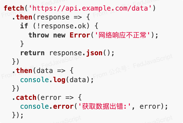 這段代碼使用了 Promise 鏈式調(diào)用的方式,不僅代碼量減少了,而且邏輯更加清晰。 fetch API 的主要特點1. 基于 Promisefetch API 基于 Promise,這意味著我們可以使用