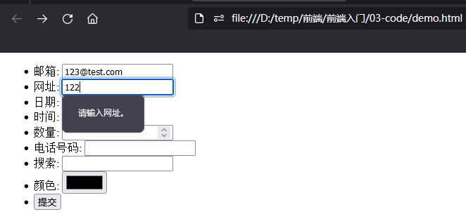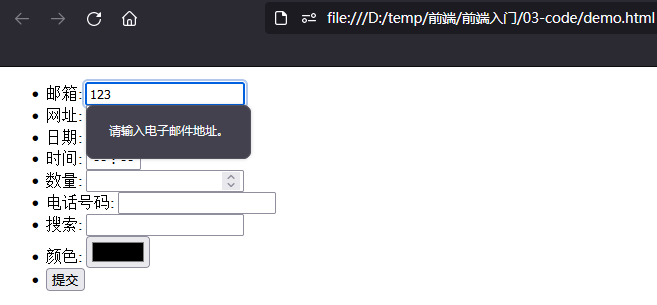 | emailNew | 用于輸入電子郵件地址,瀏覽器會自動驗證輸入是否符合電子郵件格式。