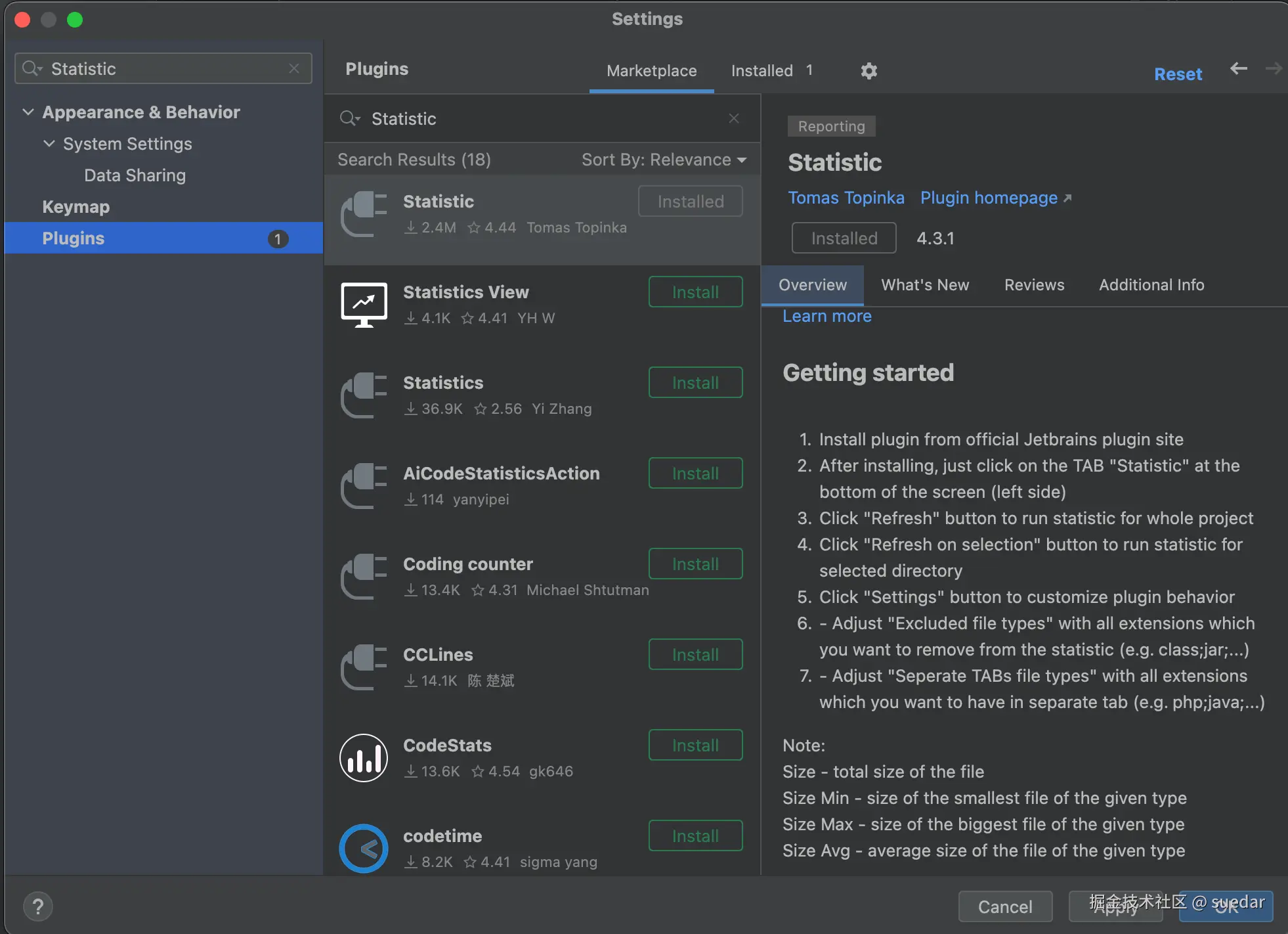 先安裝插件Statistic,Webstorm/Setting然后搜索