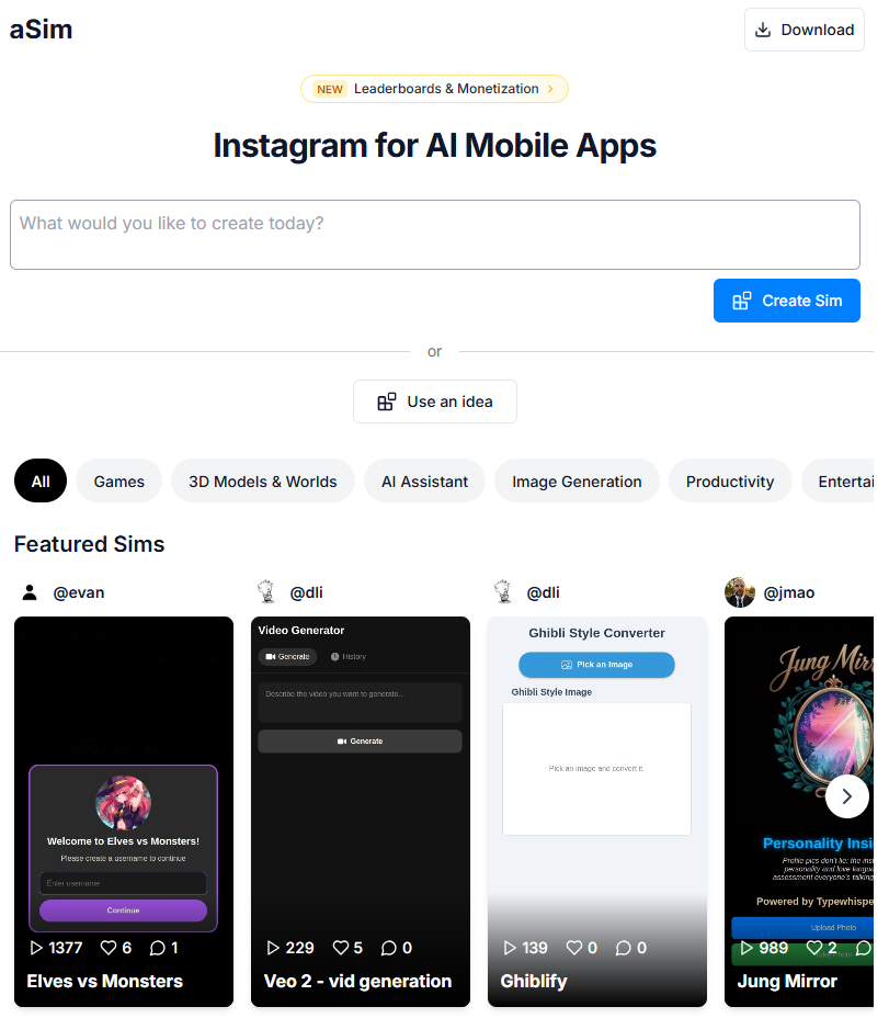 ?? 網(wǎng)站名稱:aSim ? 網(wǎng)站功能:APP生成 ?? 網(wǎng)站簡(jiǎn)介:一款A(yù)PP應(yīng)用生成工具,可以選擇不同的模板和主題,利用平臺(tái)內(nèi)置的拖放工具,無需編程知識(shí)即可快速構(gòu)建應(yīng)用。 ?? 網(wǎng)站網(wǎng)址:點(diǎn)擊打開 https://asim.sh/ ?