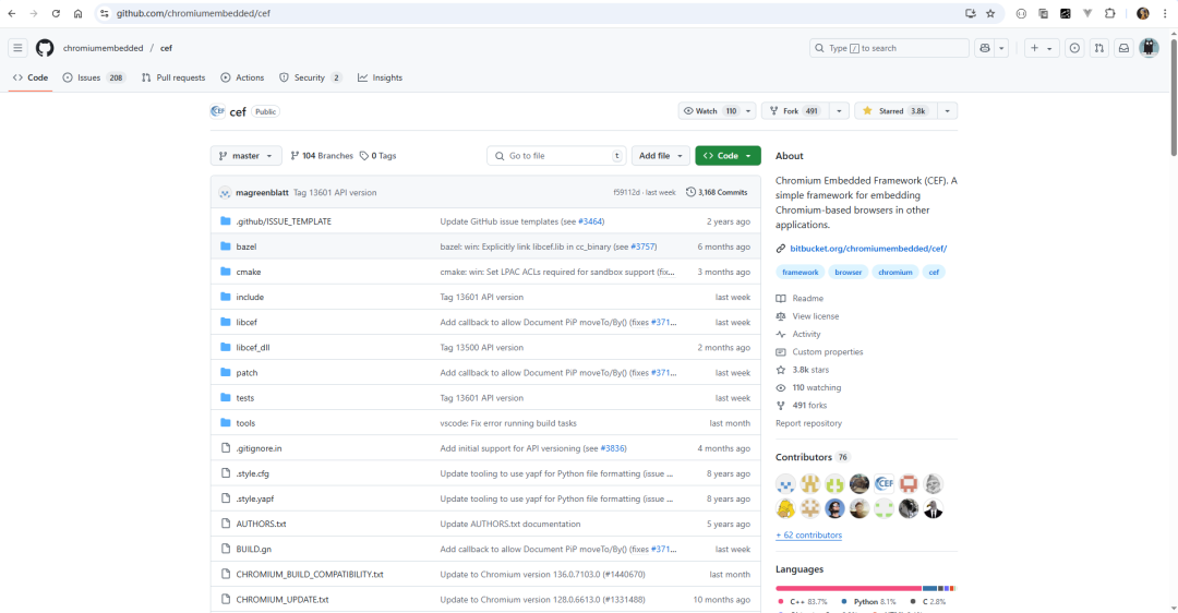 3. 商業(yè)友好許可 CEF采用BSD協(xié)議,允許開(kāi)發(fā)者在閉源商業(yè)軟件中免費(fèi)使用。據(jù)統(tǒng)計(jì),全球已有超過(guò)1億臺(tái)設(shè)備部署了基于CEF的應(yīng)用,包括MATLAB、Foxmail等專業(yè)軟件。 三、典型應(yīng)用場(chǎng)景:從企業(yè)應(yīng)用到物聯(lián)網(wǎng) 1. 企業(yè)級(jí)軟件集成 在ERP、CRM系統(tǒng)中,CEF常被用于渲染復(fù)雜的交互式報(bào)表。例如,某知名財(cái)務(wù)軟件通過(guò)CEF將在線審計(jì)功能嵌入桌面客戶端,實(shí)現(xiàn)本地?cái)?shù)據(jù)與云端服務(wù)的無(wú)縫銜接。 2. 游戲內(nèi)嵌瀏覽器 《原神》等大型游戲使用CEF構(gòu)建內(nèi)置瀏覽器,支持玩家在游戲中直接訪問(wèn)官方論壇、活動(dòng)頁(yè)面。其多進(jìn)程架構(gòu)有效避免了Web內(nèi)容崩潰導(dǎo)致游戲進(jìn)程退出的問(wèn)題。 3. 物聯(lián)網(wǎng)設(shè)備界面 環(huán)境準(zhǔn)備:安裝Visual Studio 2022、CMake 3.20+、Python 3.8+ 代碼獲取: