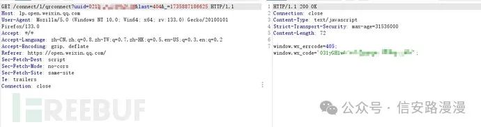 看到這里可能有一個疑問,我們如果去獲取授權code呢? 4)重定向URL被篡改有的時候,授權服務提供方并沒有對第三方軟件的回調 URI 做完整性要求和完整性校驗。 比如,第三軟件 B 的詳細回調 URI 是https://app.org/callback,那么在完整性校驗缺失的情況下,只要以https://app.org開始或者其他域名的的回調 URI 地址,都會被認為是合法的。 那么我們就可以修改回調地址,然后誘導用戶去點擊這個鏈接,這樣當返回code的時候就會去回調我們修改后的地址,這樣就可以在服務器上看到其code。進而按照授權碼失竊來進行攻擊 問題:大部分的授權服務器都限制了url的host頭,如何進行利用? 第一種方式:結合任意url跳轉。如果驗證服務器沒有完全匹配,可以通過../這種方式改變路徑的??梢栽陧撁嫔险乙粋€任意url跳轉漏洞,配合這種漏洞進行利用。 如下圖,通過../改變路徑,然后將跳轉的url指向我們的服務器,這樣就可以在服務器的日志上看到想要的內容