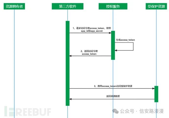 客戶端憑據(jù)機制相當于就是第三方軟件訪問不需要資源擁有者授權的資源和數(shù)據(jù),換句話說在這里客戶端也可以看作是資源擁有者。舉個例子來說就是第三方軟件訪問一些公共的服務,譬如說一些地圖信息,logo圖標等。 這種場景下的授權,便是客戶端憑據(jù)許可,第三方軟件可以直接使用注冊時的 client_id 和 client_secret 來換回訪問令牌 token 的值。 客戶端憑據(jù)機制的參與者:客戶端、授權服務、受保護資源 時序圖