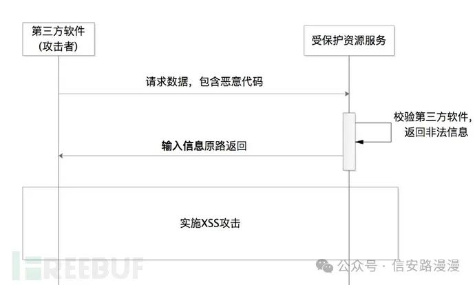 這個后果可想而知。那如何避免這種攻擊呢?方法也很簡單,實際上 OAuth 2.0 中也有這樣的建議,就是使用 state 參數(shù),它是一個隨機值的參數(shù)。當應用請求授權碼的時候附帶一個自己生成 state 參數(shù)值,同時授權服務也要按照規(guī)則將這個隨機的 state 值跟授權碼 code 一起返回。這樣,當應用接收到授權碼的時候,就要在應用這一側做一個 state 參數(shù)值的比對校驗,如果相同就繼續(xù)流程,否則直接拒絕后續(xù)流程。 在這樣的情況下,軟件 A 要想再發(fā)起 CSRF 攻擊,就必須另外構造一個 state 值,而這個 state 沒那么容易被偽造。 這本就是一個隨機的數(shù)值,而且在生成時就遵從了被“猜中”的概率要極小的建議。 2)XSS攻擊當請求抵達受保護資源服務時,系統(tǒng)需要做校驗,比如第三方軟件身份合法性校驗、訪問令牌 access_token 的校驗,如果這些信息都不能被校驗通過,受保護資源服務就會返回錯誤的信息。大多數(shù)情況下,受保護資源都是把輸入的內容,比如 app_id invalid、access_token invalid ,再回顯一遍,這時就會被 XSS 攻擊者捕獲到機會。 試想下,如果攻擊者傳入了一些惡意的、搜集用戶數(shù)據(jù)的 JavaScript 代碼,受保護資源服務直接原路返回到用戶的頁面上,那么當用戶觸發(fā)到這些代碼的時候就會遭受到攻擊。 因此,受保護資源服務就需要對這類 XSS 漏洞做修復,而具體的修復方法跟其它網站防御 XSS 類似,最簡單的方法就是對此類非法信息做轉義過濾