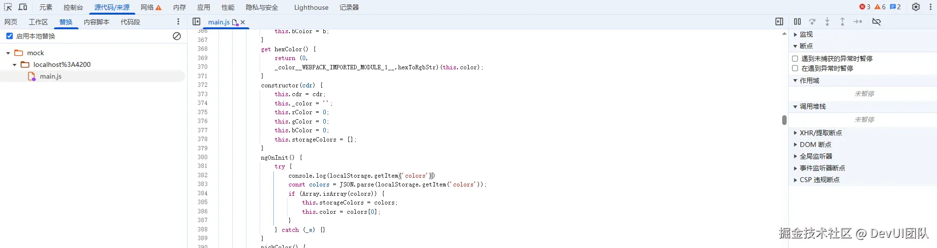 建立關(guān)聯(lián)之后,可直接在調(diào)試頁面修改文件內(nèi)容,也可新增/刪除文件等,按Ctrl+S保存后,修改的內(nèi)容會同步寫入到本地文件中。 如果不想繼續(xù)使用該功能,在根目錄右鍵選擇“從工作區(qū)移除”即可。 替換(Overrides)可以用本地的內(nèi)容替換原本網(wǎng)絡(luò)請求(包括js、css、數(shù)據(jù)請求等)的內(nèi)容,實(shí)現(xiàn)不借助代理工具就可以完成簡單的mock調(diào)試等。可按照如下步驟操作: