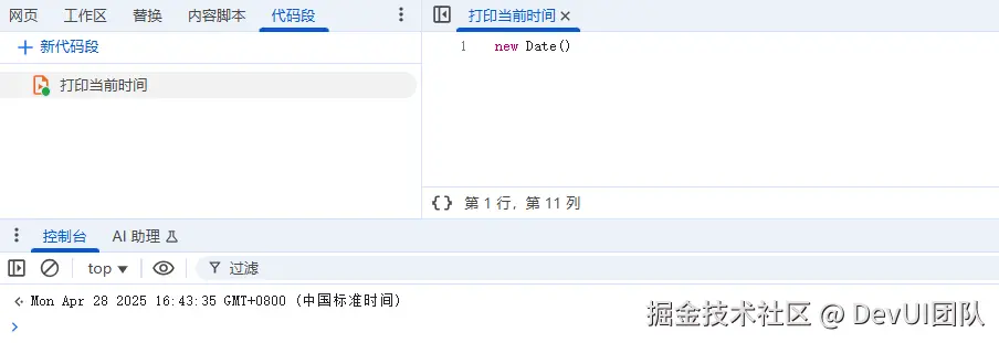 不想繼續(xù)使用替換,可以去掉“啟動本地替換”的勾選,或者直接清除配置。 內(nèi)容腳本(Content scripts)瀏覽器擴(kuò)展的js腳本,用來調(diào)試已安裝的瀏覽器擴(kuò)展。 代碼片段(Snippets)可以將一些常用的可運(yùn)行代碼片段持久化保存,方便下次快速運(yùn)行。 點(diǎn)擊添加“新代碼段”,可以為這段代碼命名,編輯內(nèi)容后按Ctrl+S保存,在代碼片段名右擊選擇“運(yùn)行”。