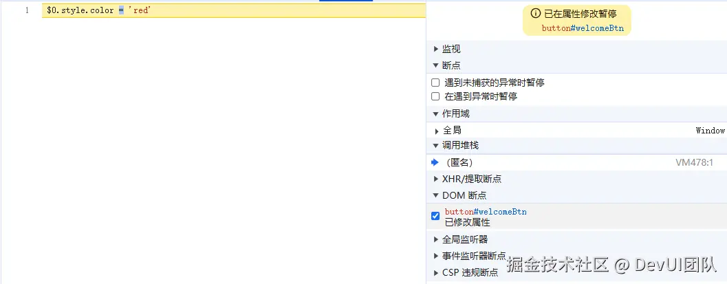 CSP違規(guī)斷點(diǎn)當(dāng)網(wǎng)頁嘗試加載或執(zhí)行違反CSP策略的內(nèi)容時(shí),瀏覽器會自動暫停執(zhí)行并觸發(fā)一個(gè)斷點(diǎn)。 調(diào)試代碼運(yùn)行至斷點(diǎn)處,進(jìn)入中斷狀態(tài),此時(shí)前端頁面顯示“已在調(diào)試程序中暫?!保琒ources面板中顯示“已在斷點(diǎn)暫?!保⑶艺{(diào)試頁面代碼跳轉(zhuǎn)至?xí)和5拇a行,并且此行黃色顯示。