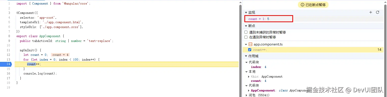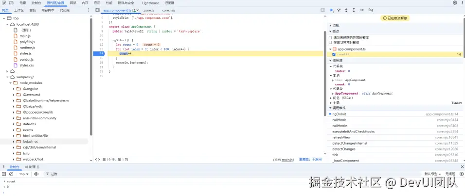 同時(shí)在右側(cè)區(qū)塊,作用域和調(diào)用堆棧都顯示出了內(nèi)容。 作用域:可以看到暫停時(shí)當(dāng)前位置可以訪問變量的值,包含當(dāng)前代碼塊、本地、閉包、腳本等。 通過查看各種變量的值判斷代碼執(zhí)行的結(jié)果是否符合預(yù)期。 調(diào)用堆棧:可以查看函數(shù)的調(diào)用鏈,用來查看當(dāng)前的調(diào)用關(guān)系。 選中某個(gè)函數(shù)右鍵選擇“重啟幀”可以回到開始調(diào)用該函數(shù)的狀態(tài)(列如異步場景等無法重啟)。 如果不關(guān)注第三方庫函數(shù)的調(diào)用,可以右鍵忽略指定的js腳本或者忽略全部第三方腳本,忽略后默認(rèn)不會顯示在調(diào)用堆棧中,顯示更簡潔方便快速排查業(yè)務(wù)代碼問題。