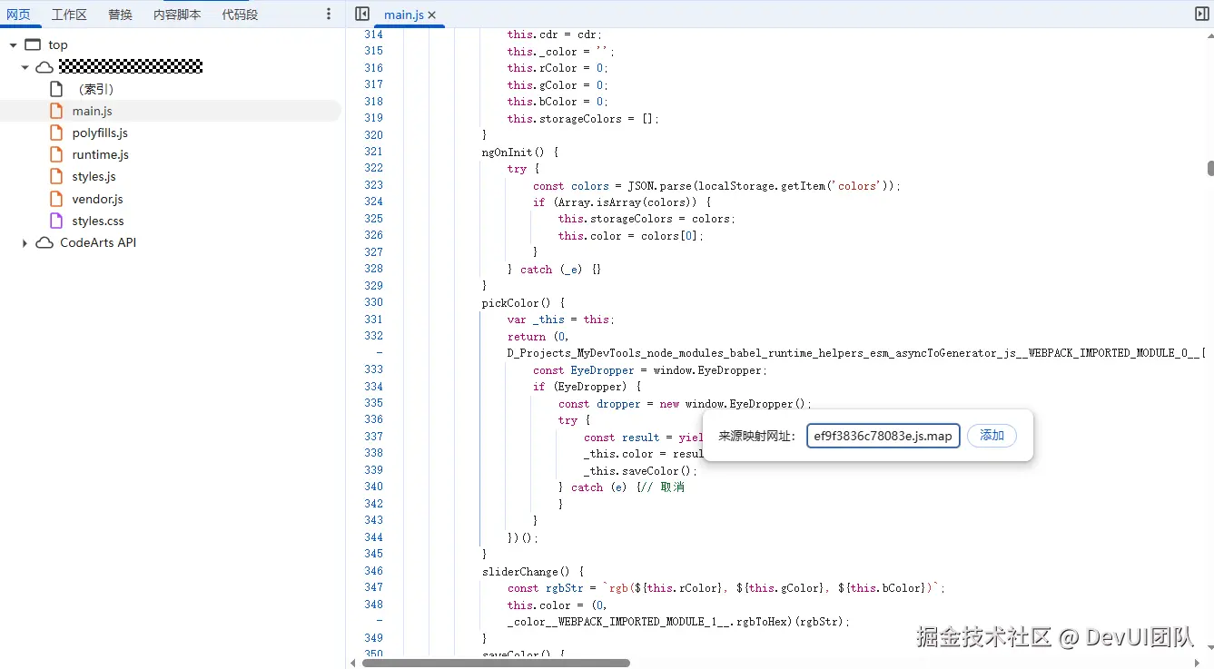 ?? 線上調(diào)試線上部署的代碼經(jīng)過構(gòu)建之后被混淆和壓縮,同時(shí)為了安全不會將sourcemap文件發(fā)布至線上環(huán)境,因此線上環(huán)境的代碼即使經(jīng)過格式化后也很難閱讀,難以直接調(diào)試。 可以按照如下步驟加載本地的sourcemap文件進(jìn)行調(diào)試: