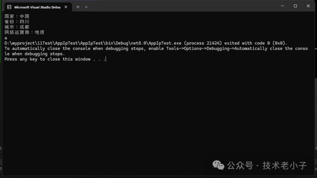 Console.WriteLine($"網(wǎng)絡(luò)運(yùn)營商:{ipinfo.NetworkOperator}");