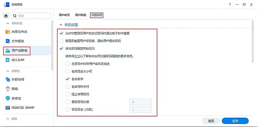 ▼配置密碼強度規(guī)則 您可以設置用戶的密碼強度以降低被黑客攻擊的風險。