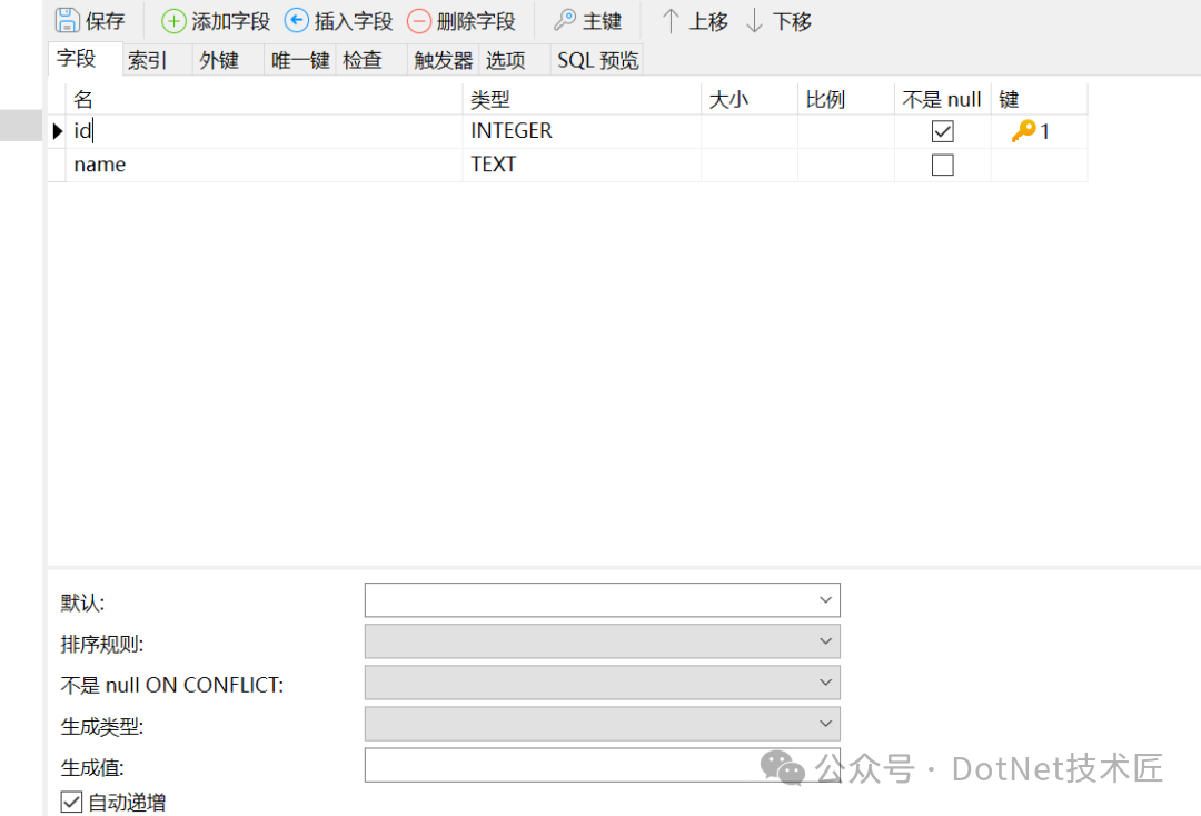 4、使用 Navicat 在 SQLite 中建表在 Navicat 中手動創(chuàng)建一張名為