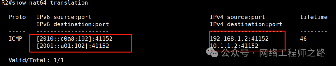 在改造ipv6的場景中,很多時(shí)候我們還是希望能和之前的ipv4地址之間能夠?qū)崿F(xiàn)雙向互通,而不是單向能訪問。這時(shí)候就需我們在規(guī)劃和配置ipv6地址的時(shí)候特別注意了。利用NAT64的特殊機(jī)制,其實(shí)也是可以實(shí)現(xiàn)雙向互通的。 IPV4和IPV6轉(zhuǎn)換原理 ?一、IPv6到IPv4轉(zhuǎn)換(目標(biāo)地址) 二、IPv4到IPv6轉(zhuǎn)換(源地址) 三、前綴類型 實(shí)驗(yàn)舉例 01 拓?fù)鋱D和需求 ![]() 02 R2關(guān)鍵配置 03 結(jié)果驗(yàn)證 ![]() 數(shù)據(jù)包在經(jīng)過NAT64之后會(huì)加上前綴2010::/96和ipv4地址相結(jié)合,2010::c0a8:102對(duì)應(yīng)到去掉前綴ipv4就是c0a8:102→192.168.1.2作為源地址,2001::a01:102去掉前綴ipv4就是10.1.1.2作為目的地址。 ![]() ![]() 數(shù)據(jù)包在經(jīng)過NAT64之后會(huì)去掉前綴2010::/96和ipv4地址相結(jié)合,2001::a01:102對(duì)應(yīng)到去掉前綴ipv4就是10.1.1.2作為源地址,2001::101:101去掉前綴ipv4就是1,1,1,1作為目的地址。 ![]() 注意事項(xiàng) 如果需要進(jìn)行web互相訪問需求,則需要配合DNS64使用,當(dāng)DNS64檢測到無AAAA記錄時(shí),將A記錄的IPv4地址嵌入IPv6地址,觸發(fā)NAT64轉(zhuǎn)換。 閱讀原文:原文鏈接 該文章在 2025/5/26 12:31:40 編輯過 |