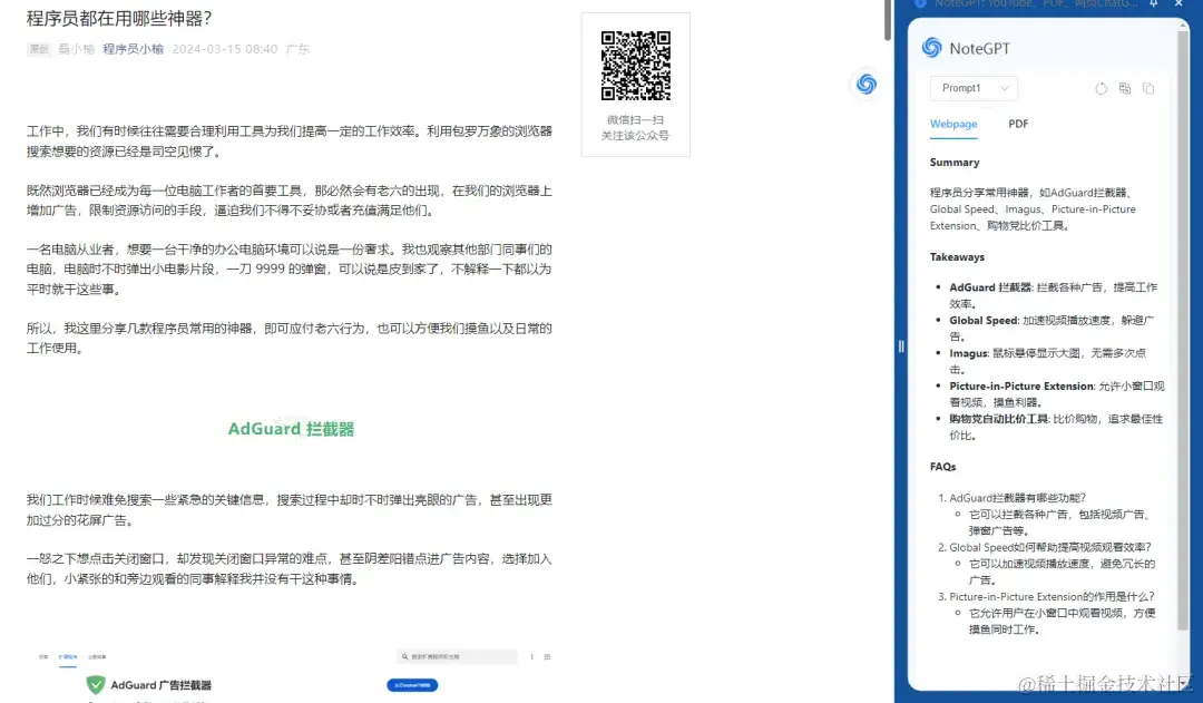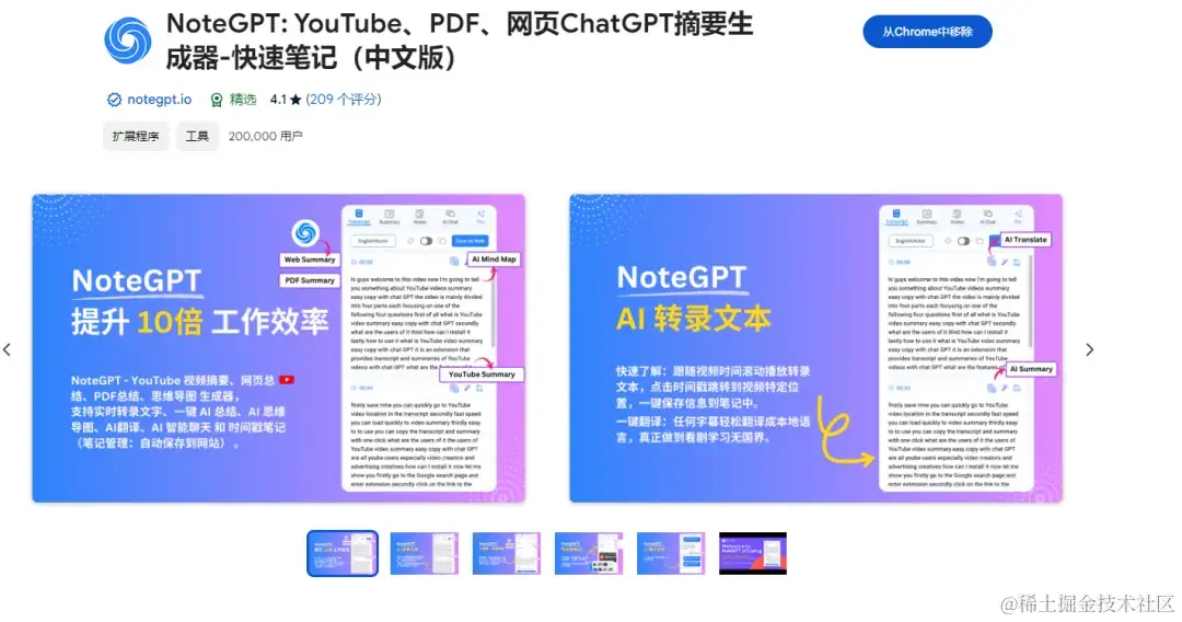 該工具依靠 NoteGPT AI 能力,讓用戶可以快速地獲取網(wǎng)頁內(nèi)容的關(guān)鍵信息,同時(shí)提供智能的 AI 聊天。