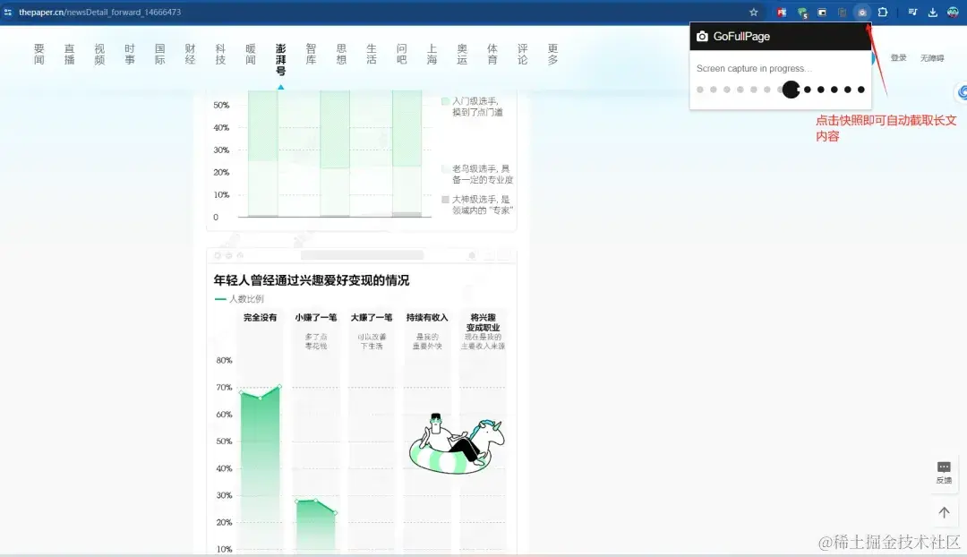 如果一個(gè)需要滾動看完的內(nèi)容進(jìn)行截圖,那我一定很頭痛需要截取幾張?jiān)儆卯媹D軟件拼接好,那多少會有些力不從心。如果我使用這個(gè)插件,這些麻煩將會一掃而光。