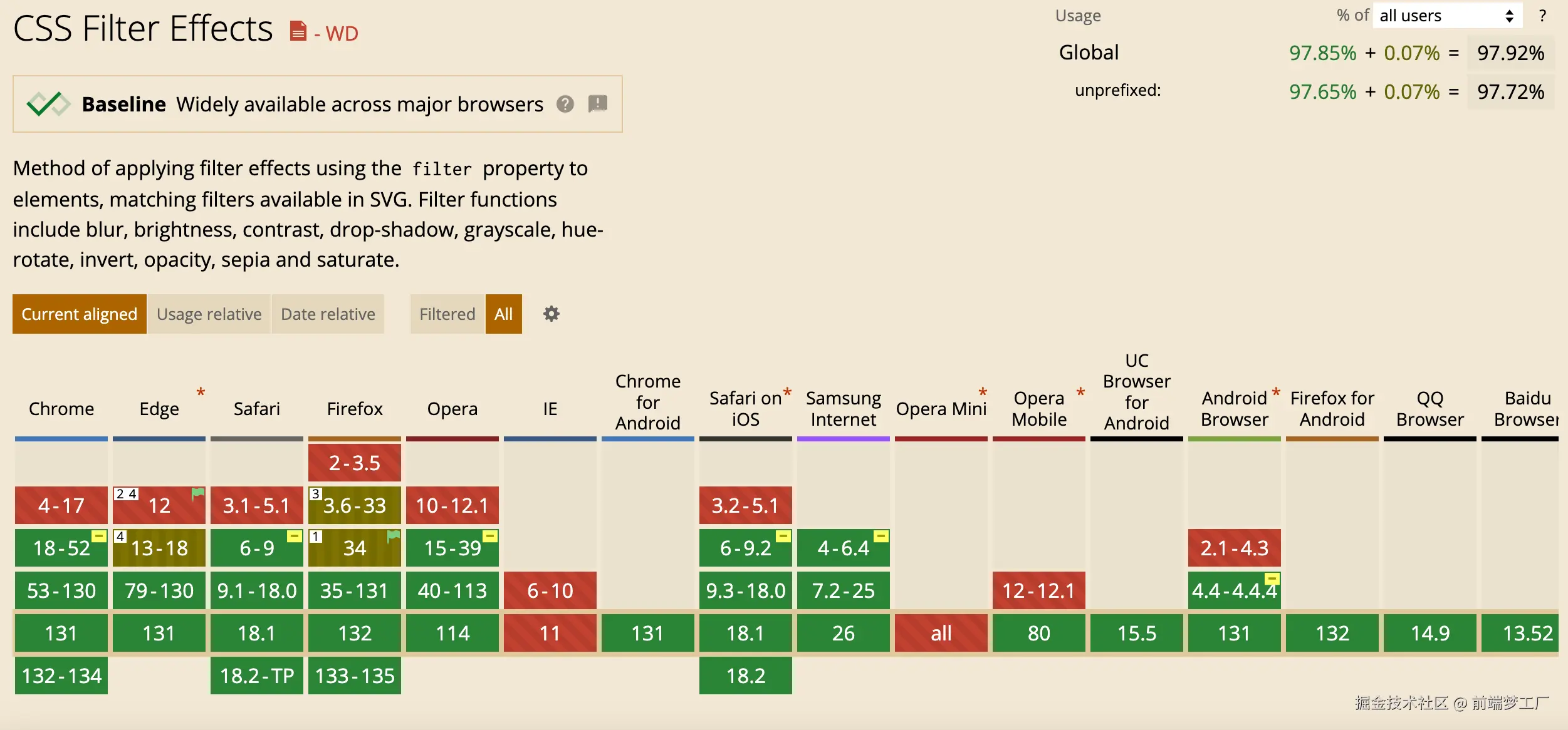 剛加入的樣式函數(shù),但是它在主流瀏覽器上都是支持的,但是要注意下支持的版本,兼容性如下圖所示: