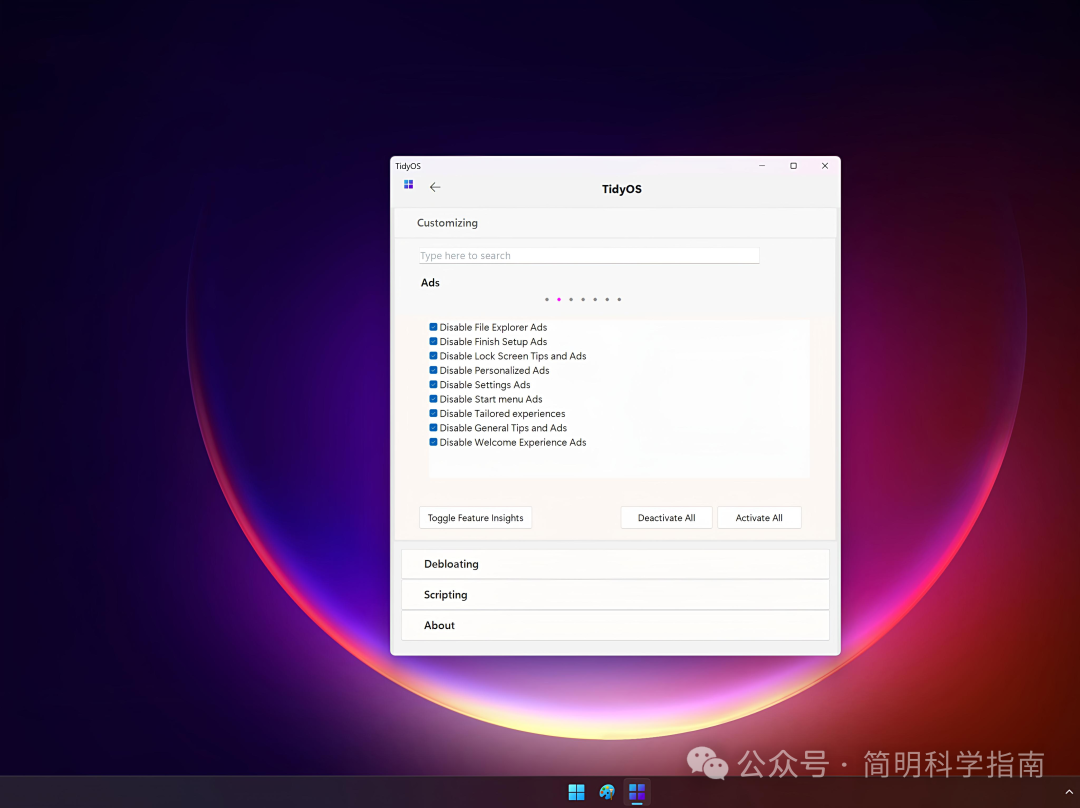 但如果不想再忍受這些呢?TidyOS是一款系統(tǒng)清理工具,能執(zhí)行多項實用任務(wù),讓你的Windows不再那么討人厭。它可以禁用“開始”菜單中的廣告、“完成設(shè)置”廣告,卸載預(yù)裝應(yīng)用,還能關(guān)閉各種信息收集功能以及其他可能占用系統(tǒng)資源的不必要功能。TidyOS功能豐富,而且用戶界面十分簡潔,上手難度低,能顯著提升你的Windows使用體驗。