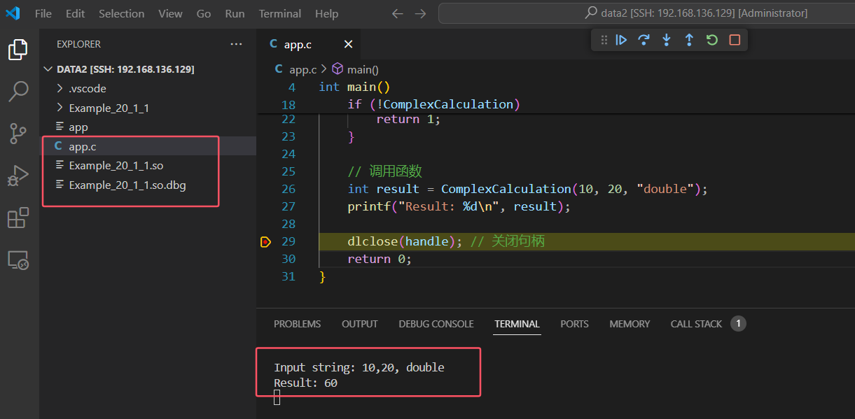 使用 vscode 遠(yuǎn)程調(diào)試,哈哈,得到了我們想要的結(jié)果,截圖如下:
