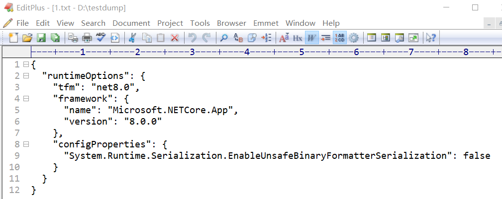 00000259`c2ec8f00 66 6d 22 3a 20 22 6e 65-74 38 2e 30 22 2c 0d 0a fm": "net8.0",..