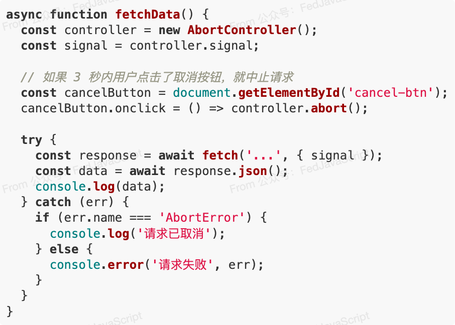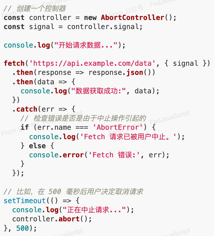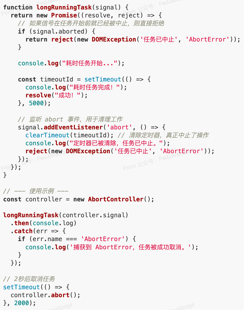 是目前實(shí)現(xiàn) Promise 取消的最佳實(shí)踐和標(biāo)準(zhǔn)方案。它最初是為取消 fetch