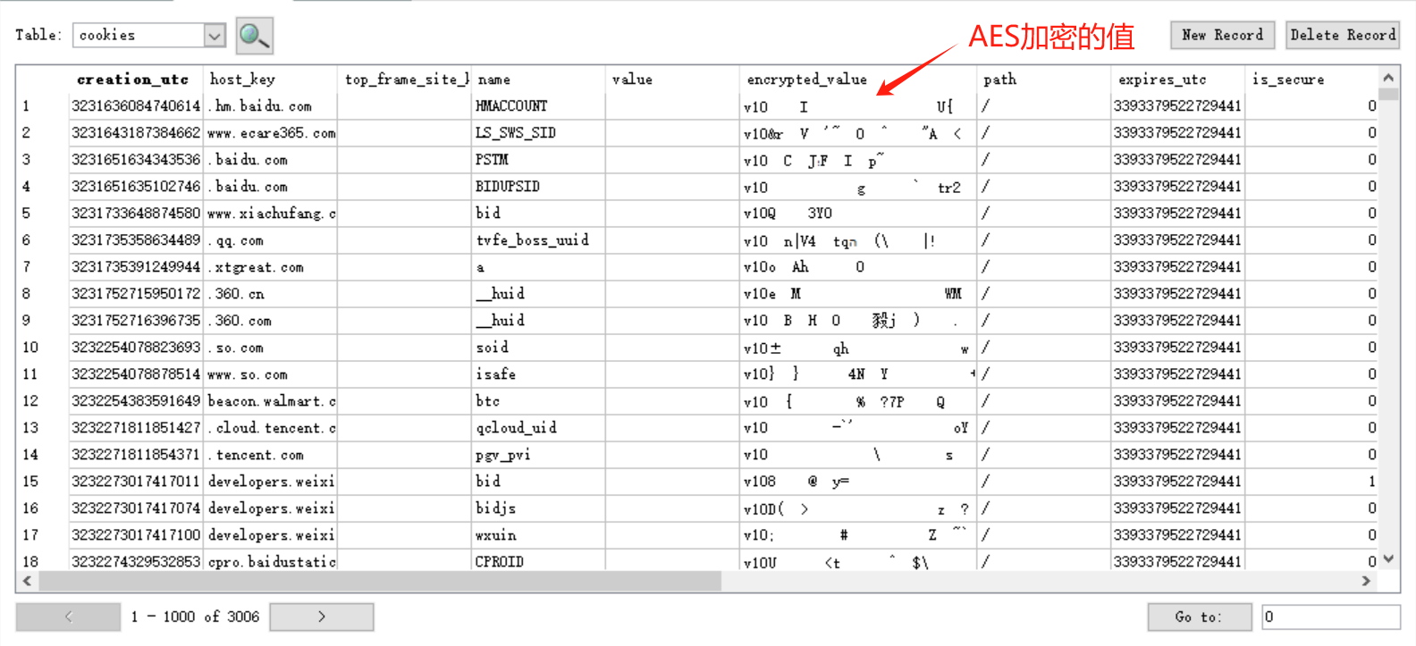 一、基于谷歌內(nèi)核瀏覽器的cookie文件保存位置以目前流行的三款基于Chrominum內(nèi)核的瀏覽器為例,Cookie文件保存在當(dāng)前用戶的AppData目錄下,注意該文件沒(méi)有擴(kuò)展名。 1、谷歌的Chrome 2、奇虎的360se 3、微軟的Edge 注意360的保存位置略有不同。 二、Cookie文件的格式和加密方式該Cookie文件是sqlite格式的數(shù)據(jù)庫(kù)文件,可以用sqlite數(shù)據(jù)庫(kù)瀏覽工具打開(kāi)查看,如下圖: 打開(kāi)觀察發(fā)現(xiàn)cookie值是被加密的,采用的加密算法是AES,確切的說(shuō)是GCM算法。要進(jìn)行解密則需要知道秘鑰key和向量iv。那么key和iv保存在哪? 三、秘鑰key在哪秘鑰文件在“Local State”文件中,注意這是一個(gè)json文件,不是目錄,所在位置在Cookies文件的上兩層目錄中。對(duì)應(yīng)上述三款瀏覽器分別如下: