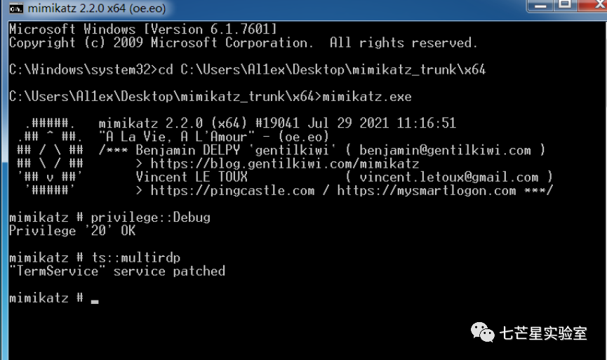多開實(shí)現(xiàn)1Step 1:在目標(biāo)主機(jī)上以管理員權(quán)限執(zhí)行mimikatz的命令