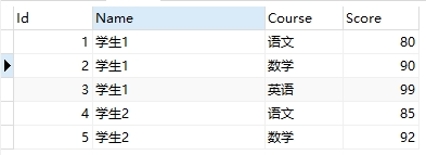 INSERT INTO `t_student` VALUES (4, '學(xué)生2', '語文', 85);