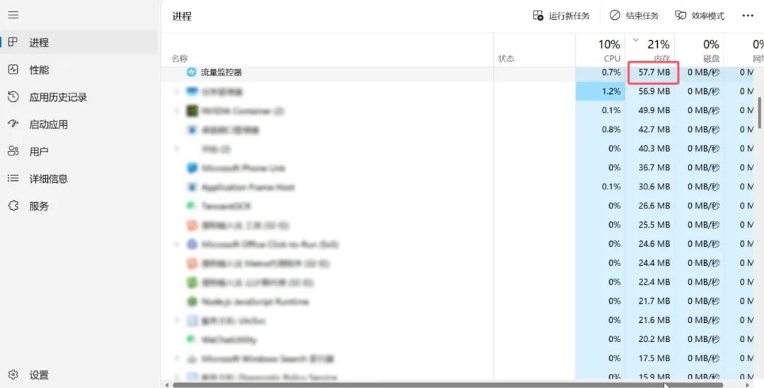 軟件的體積不到 4M,后臺運行時占用內(nèi)存更是低于 60M,真正做到了輕量級運行。