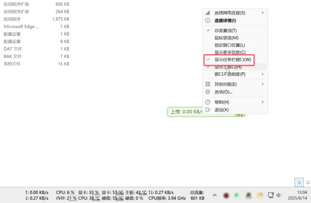 接著,在主窗口右鍵點擊,勾選 “顯示任務(wù)欄窗口” 選項,若不需要主窗口,可直接取消 “顯示主窗口”。