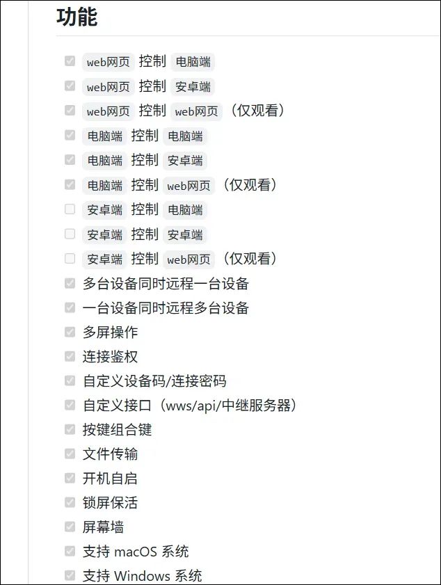 - 安全與隱私:連接鑒權(quán)、自定義設(shè)備碼 / 連接密碼,數(shù)據(jù)傳輸加密,放心用。