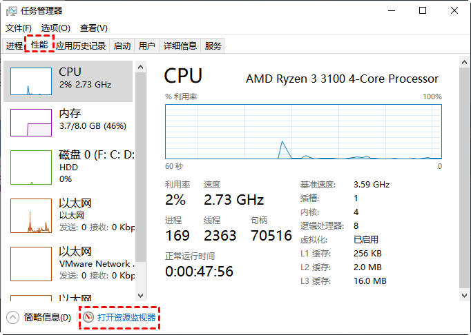 桌面上有一個(gè)很久的文件夾,里面存了很多文件,如文檔、PS圖片、視頻等。打開檢查了里面的很多數(shù)據(jù)并關(guān)閉了打開的各種程序,包括office、Photoshop以及另外一些三方工具。在刪除這個(gè)文件夾時(shí)提示“文件夾正在使用,操作無法完成,因?yàn)槠渲械奈募A或文件已在另一程序中打開,請(qǐng)關(guān)閉該文件夾或文件,然后重試?!?/b>檢查了任務(wù)欄沒有打開任何程序,并且任務(wù)欄右側(cè)也沒有后臺(tái)運(yùn)行,這是怎么回事呢?文件夾刪除不了怎么辦? ![]() 在刪除某些文件時(shí),系統(tǒng)可能會(huì)給出各種提示,不只是刪除,還有一些其他操作也會(huì)出現(xiàn)這種提示。如重命名文件或文件夾,移動(dòng)文件或文件夾時(shí)也很可能遇到“文件夾正在使用”無法重命名或移動(dòng)的情況。那么現(xiàn)在遇到文件夾正在使用無法刪除怎么辦呢?如何才能成功刪除這些文件。 文件夾正在使用無法刪除怎么辦?遇到文件夾正在使用無法刪除的問題時(shí),請(qǐng)?jiān)俅螜z查是否真的已關(guān)閉正在使用的程序。通過查看任務(wù)欄狀態(tài)或查看任務(wù)管理器進(jìn)程也沒發(fā)現(xiàn)的話,可以使用“資源監(jiān)視器”查詢和待刪除文件或文件夾有關(guān)的進(jìn)程。 方法1:資源監(jiān)視器結(jié)束進(jìn)程1. 打開資源監(jiān)視器,右鍵點(diǎn)擊任務(wù)欄,在彈出的列表中選擇“任務(wù)管理器”。 ![]() 2. 在任務(wù)管理器中切換到“性能”界面,然后點(diǎn)擊底部的“打開資源監(jiān)視器”。 ![]()